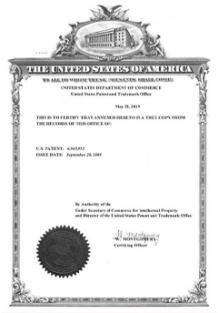 Bằng sáng chế gốc của Hoa Kỳ và bằng sáng chế ứng dụng ở các nước lớn trên thế giới (đã nhận được tổng 22 bằng sáng chế trên toàn thế giới)